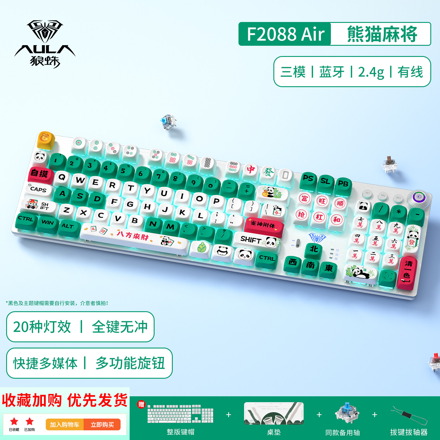 狼蛛F2088AIR无线三模机械键盘青轴108热插拔电竞游戏笔记本电脑