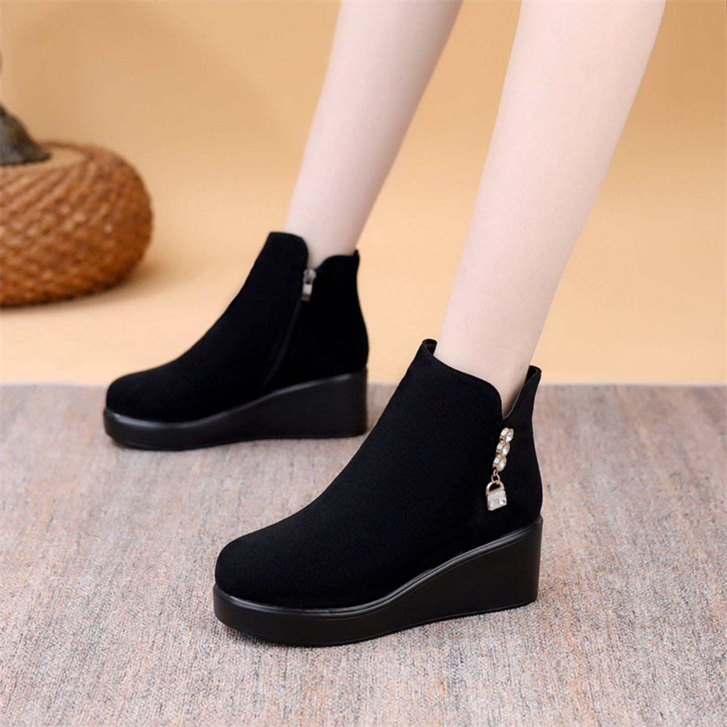 短靴女春秋2025新款磨砂内增高坡跟冬季加绒棉靴子平底单鞋女鞋子