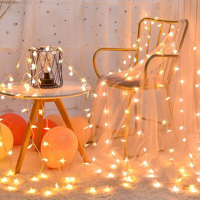圣诞led星星灯串彩灯闪满天星生日场景民宿装饰房间室内布置氛围