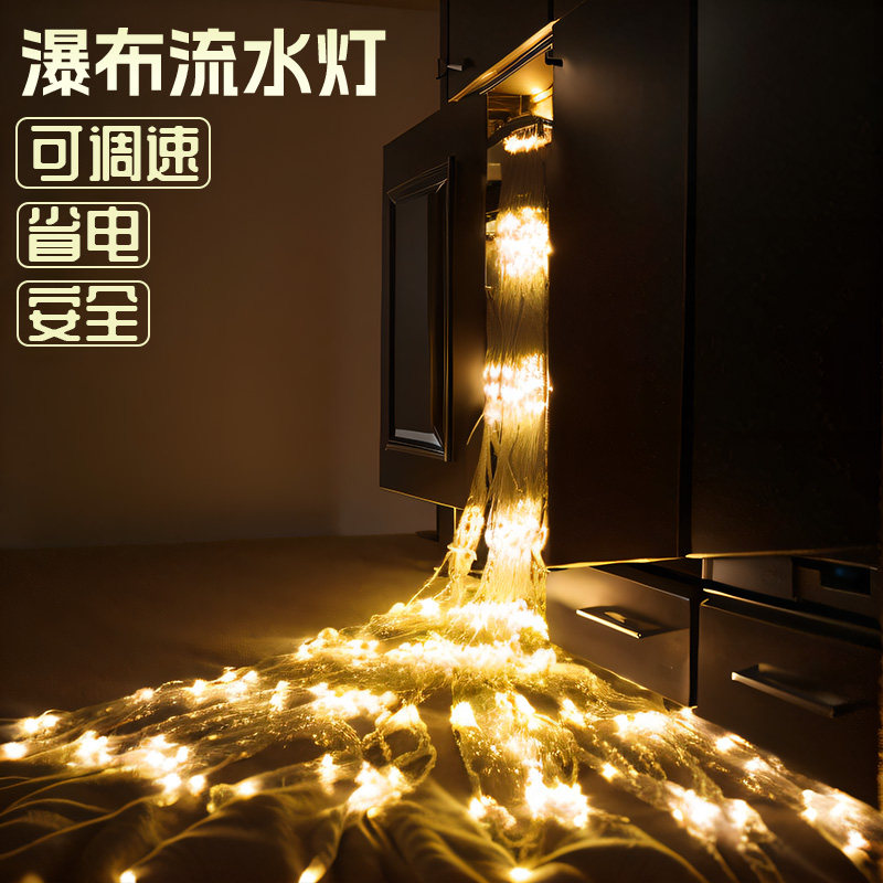led星星灯串房间卧室装饰背景布置春节过新年彩灯气氛瀑布流水灯