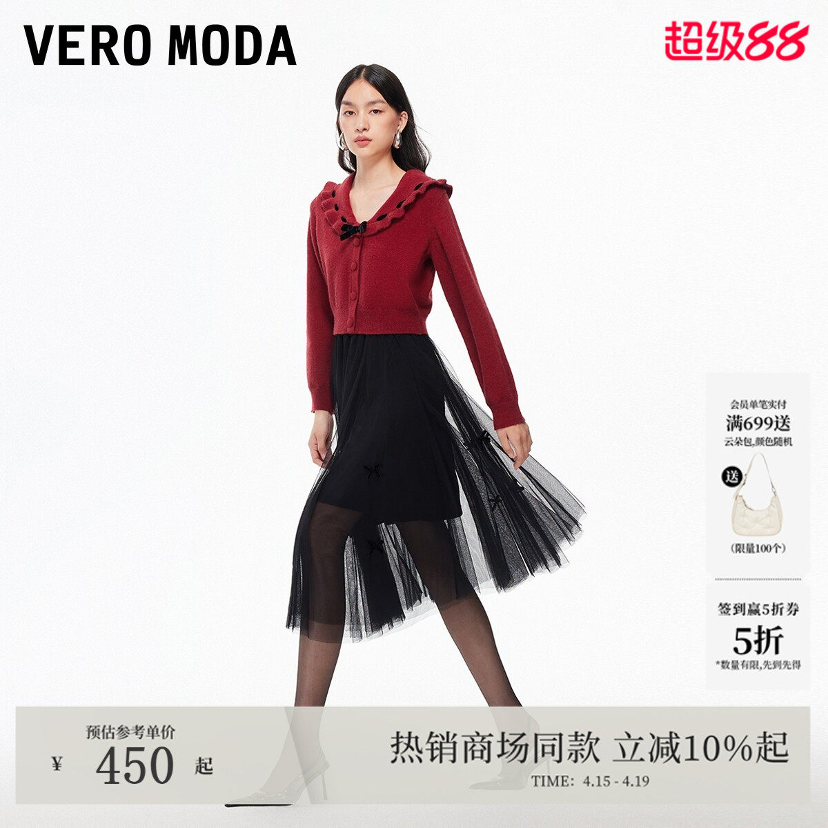 Vero Moda连衣裙冬季蝴蝶结针织衫红色裙子325446023