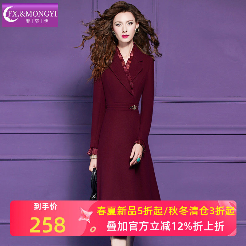 菲梦伊红色西装连衣裙女冬季高级感商务气质收腰中长款职业大摆裙