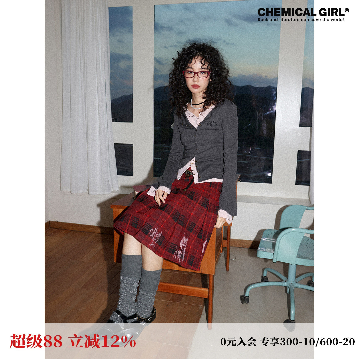 今屿花花 半身裙女2025年新款秋冬款高腰红色雪纺 裙子碎花蛋糕裙
