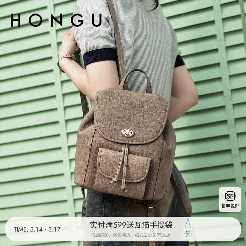 红谷包包女士新款通勤真皮双肩包女时尚大容量抽绳背包休闲旅行包