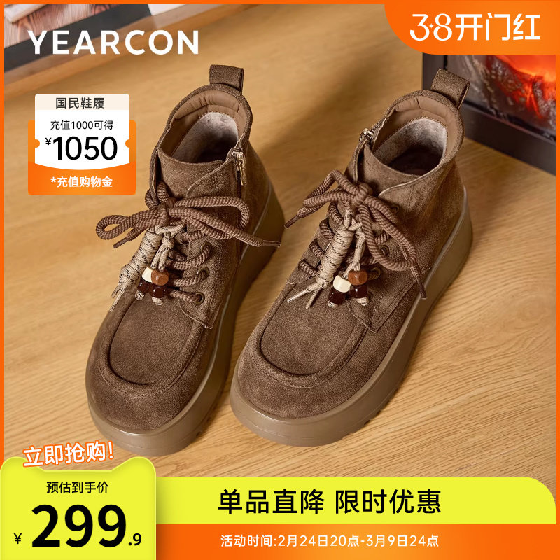 意尔康女鞋2025冬季马丁靴厚底袋鼠鞋休闲小个子短靴复古二棉鞋