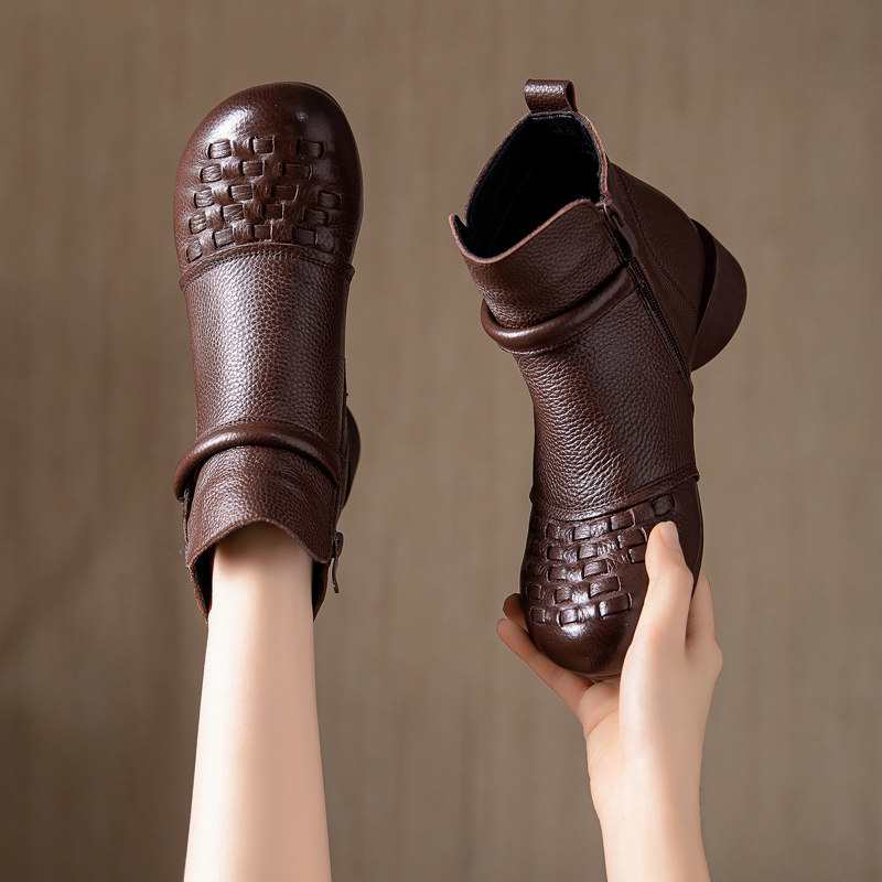 头层牛皮秋冬2025新款复古女士短靴二棉鞋舒适加绒真皮软底妈妈鞋