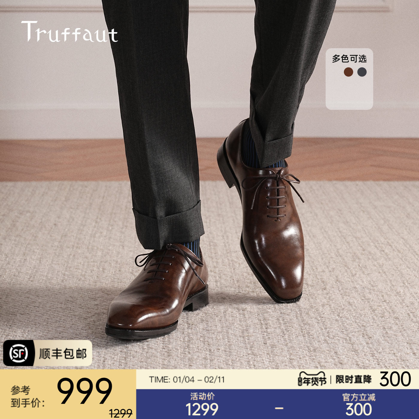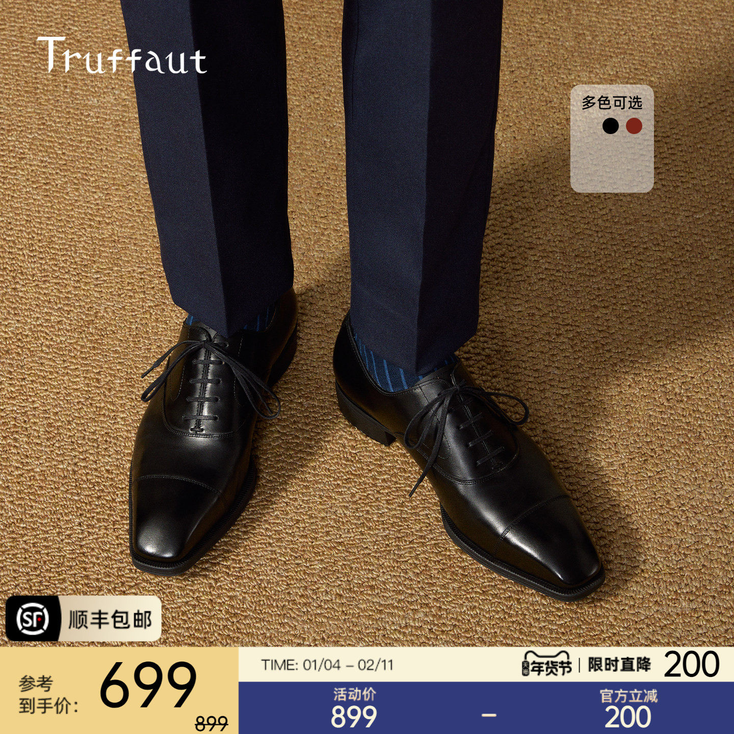 【体验价】Truffaut手工皮鞋男真皮正装商务牛津鞋新郎结婚鞋皮底