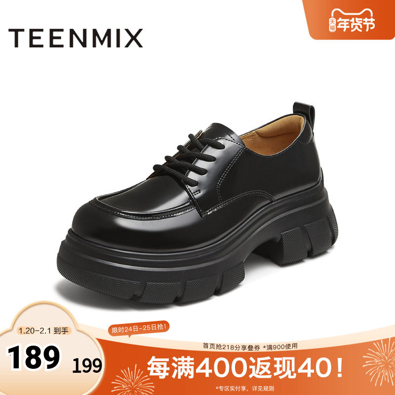 天美意厚底增高复古乐福小皮鞋女牛津鞋单鞋2025秋季新款CFR20CM5
