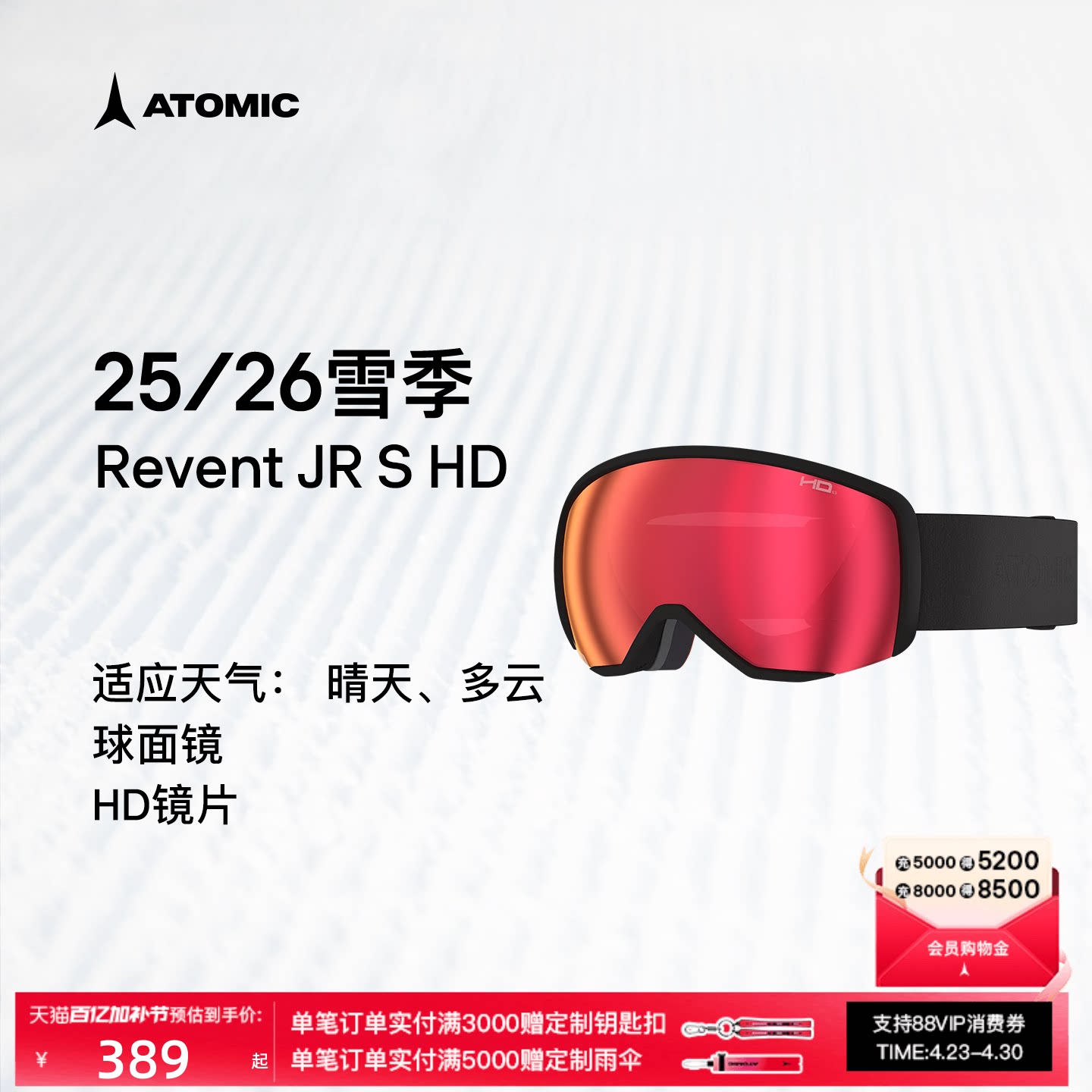 ATOMIC阿托米克滑雪眼镜2526新品球面镜儿童护目镜Revent JR S HD
