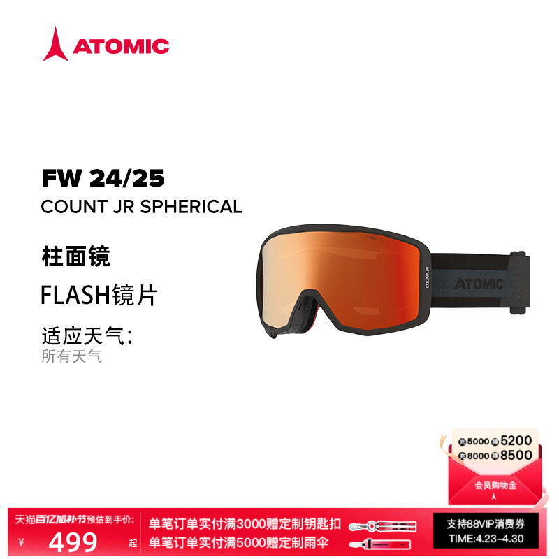 ATOMIC阿托米克滑雪眼镜2425新品球面/柱面防雾儿童雪镜COUNT JR