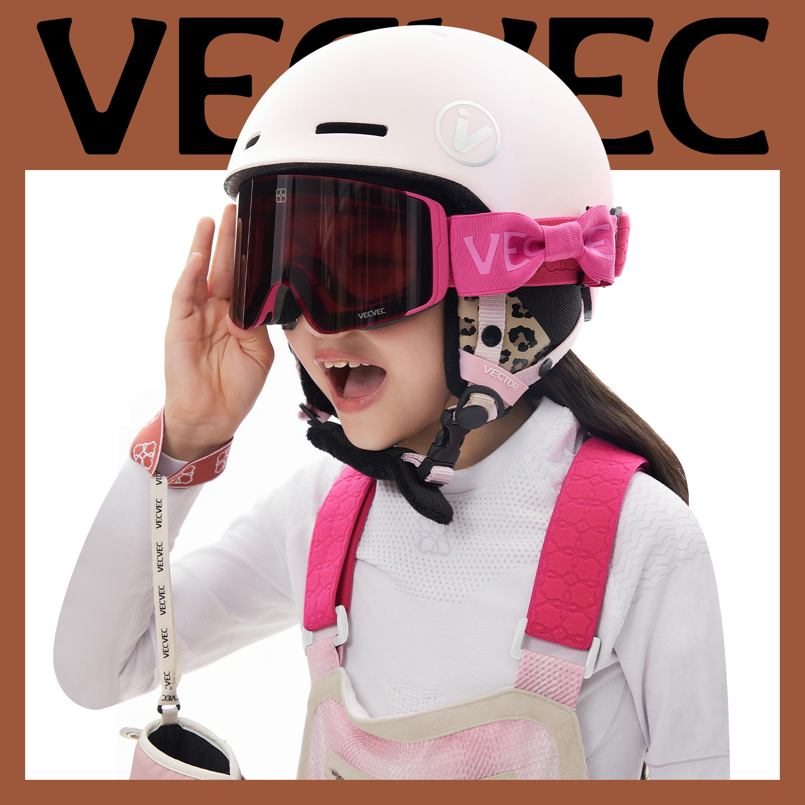VECVEC儿童滑雪眼镜磁吸替换日夜双用单双板粉色缎带可爱女孩俏皮