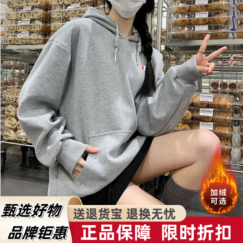 日版Champion冠军加绒套头衫卫衣男女刺绣连帽外套休闲情侣装帽衫