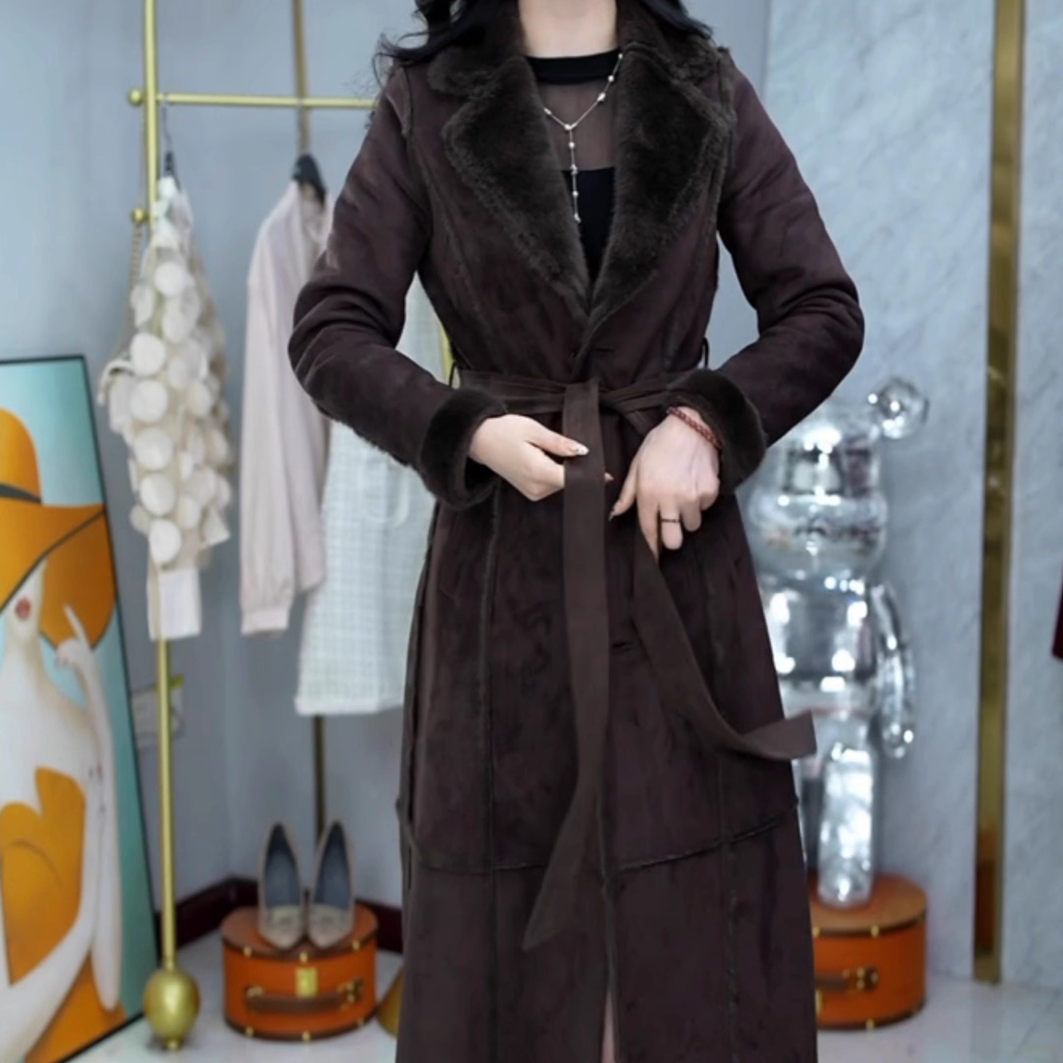 - 长款皮毛一体外套