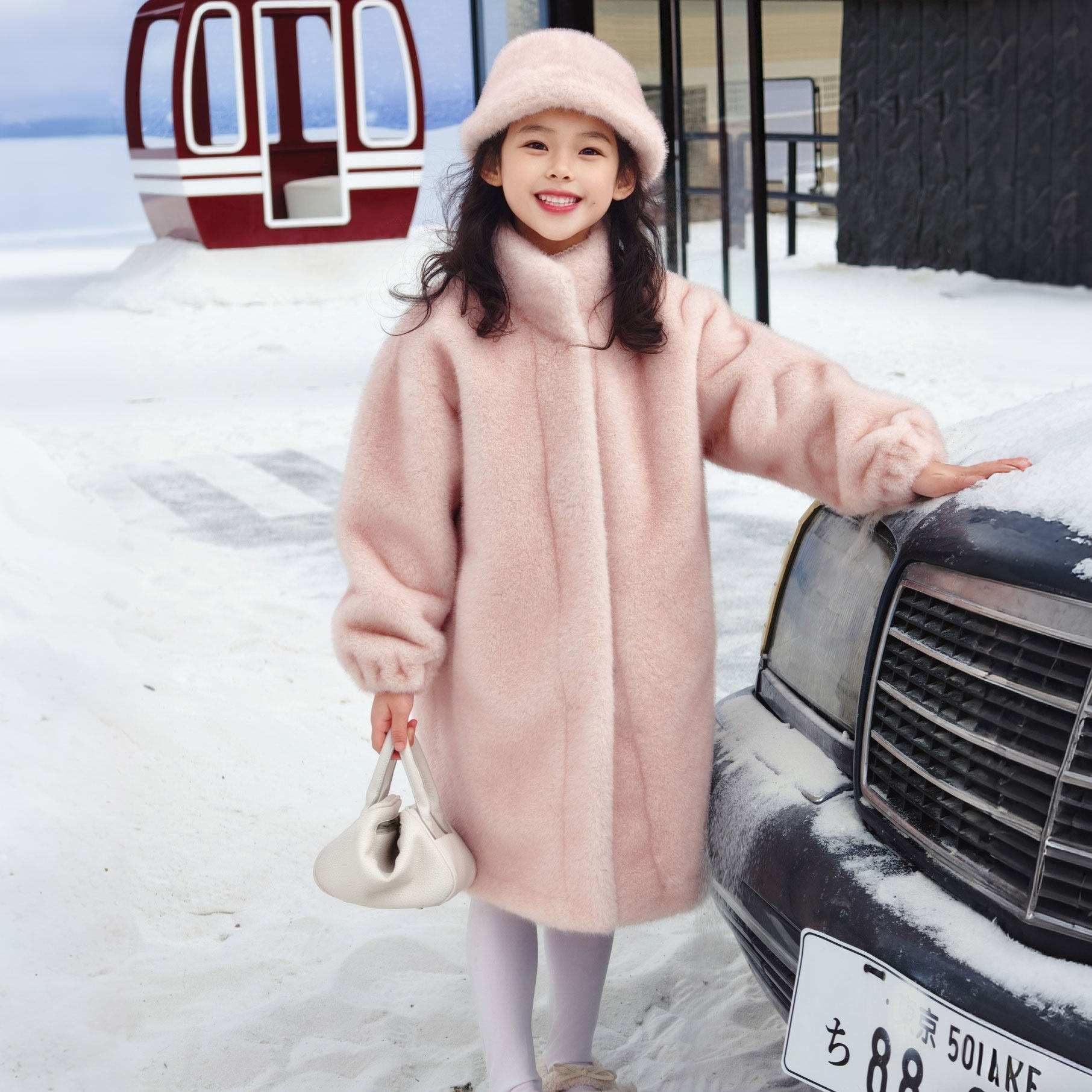 Next Alice女童中长款皮毛一体大衣儿童女孩皮草毛毛外套冬款宝宝