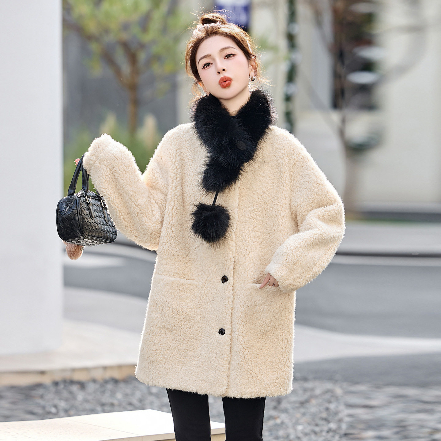 - 羊剪绒皮草外套女