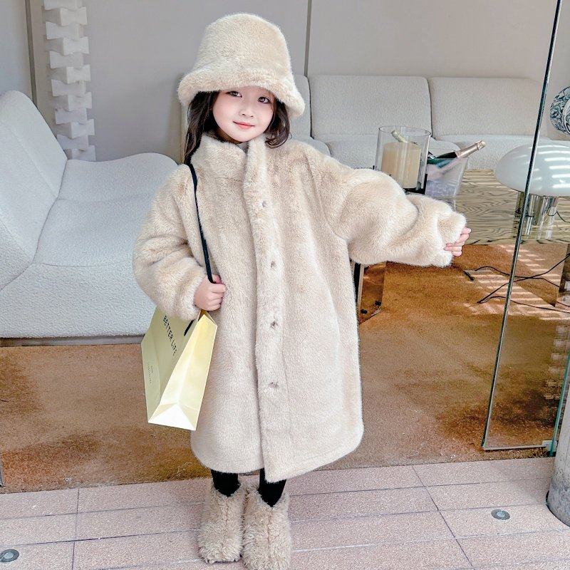 女童中长款皮毛一体大衣加厚2025新款女孩毛毛外套儿童秋冬洋气潮