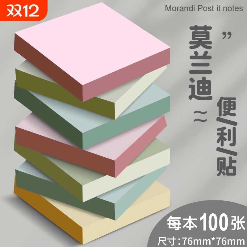 莫兰迪色系便利贴高颜值可粘贴标签贴大便签贴纸学生用便签本有粘性强彩色便签纸记事贴韩国ins索引贴