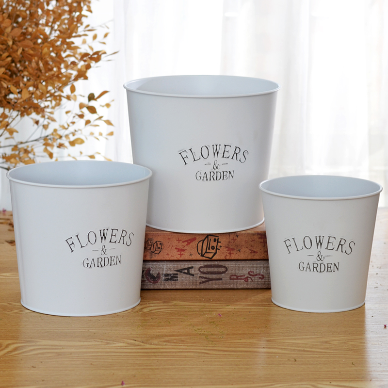出口铁皮桶复古做旧英文多肉盆栽收纳桶花桶绿植园艺花盆套盆收纳