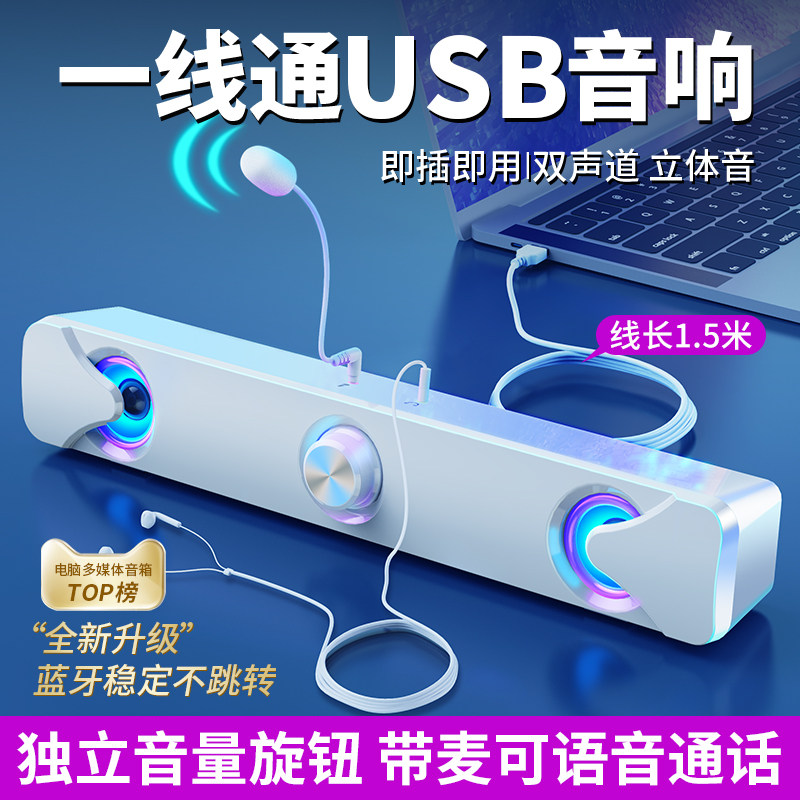 音响台式电脑音箱家用usb一线通笔记本蓝牙小型外接有线带麦克风