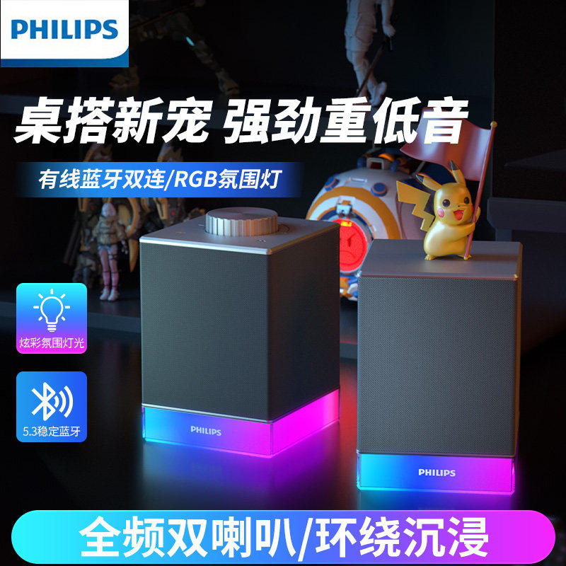 飞利浦桌面音响台式电脑音箱RGB灯重低音家用游戏电竞音响SPA4209