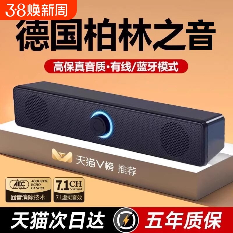 音响台式电脑音箱家用小型USB接口笔记本桌面长条式蓝牙有线连接