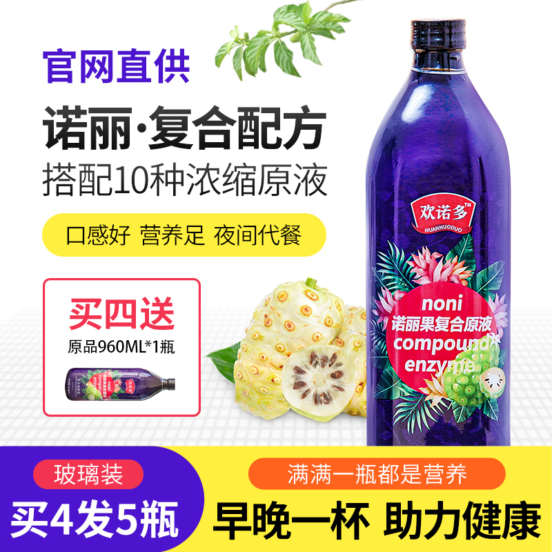 买4发5】 欢诺多诺丽复合果汁NONI酵素原液官方诺丽果汁玻璃瓶装