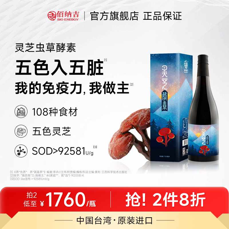 佰纳吉灵芝酵素原液五色灵芝孢子粉破壁虫草诺丽果果蔬孝素饮正品