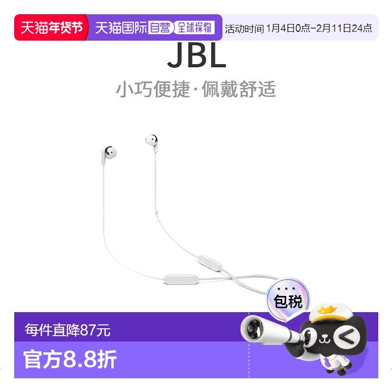 【日本直邮】JBL蓝牙耳机入耳式带麦T215BT低音运动跑步挂脖式