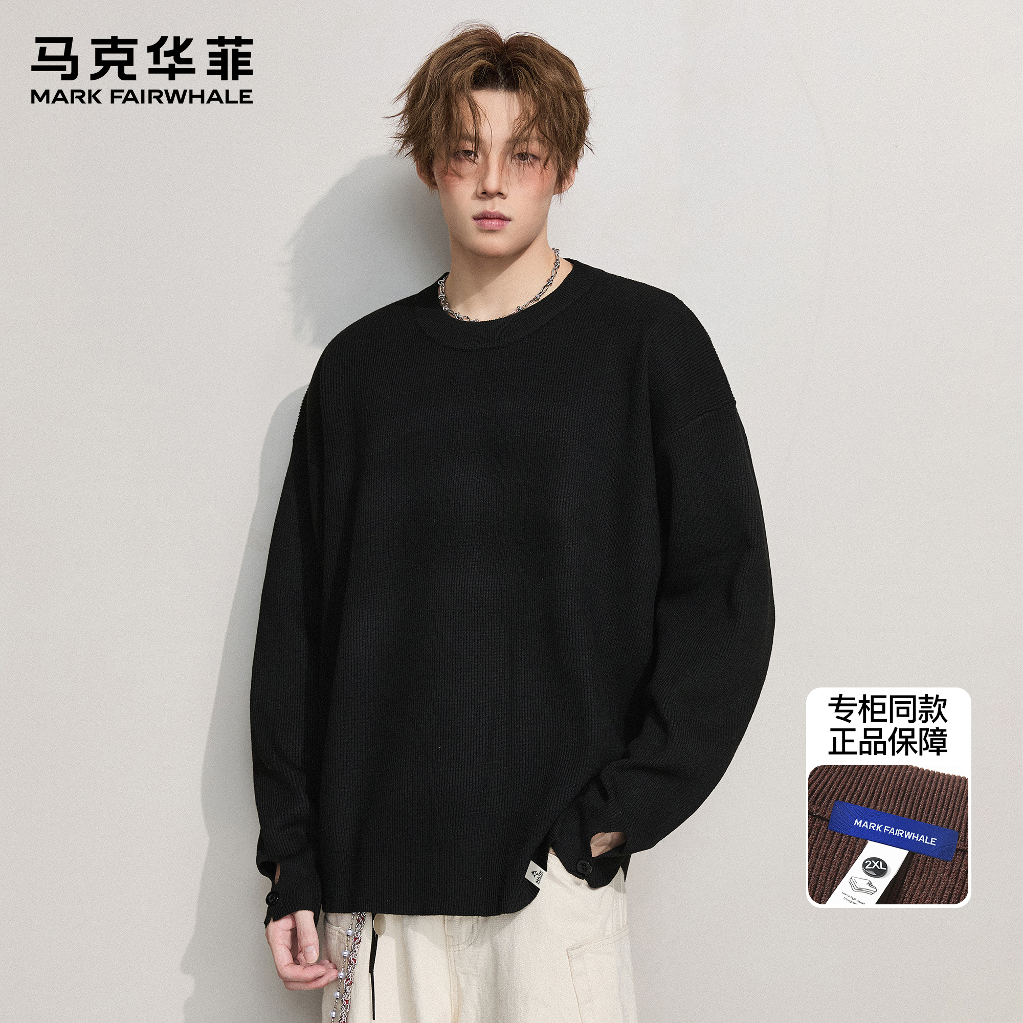 马克华菲秋冬毛衣男款春秋潮牌美式复古肌理感男士宽松圆领针织衫