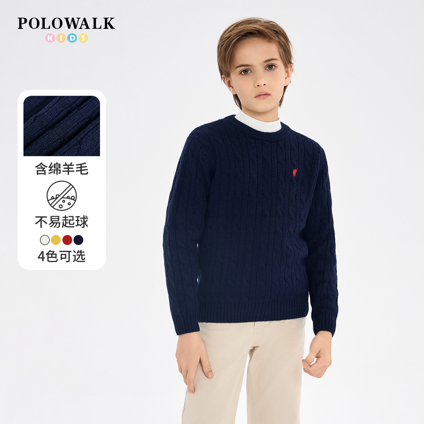 【含绵羊毛】POLOWALK童装男童羊毛衫2025秋冬毛衣圆领绞花针织衫