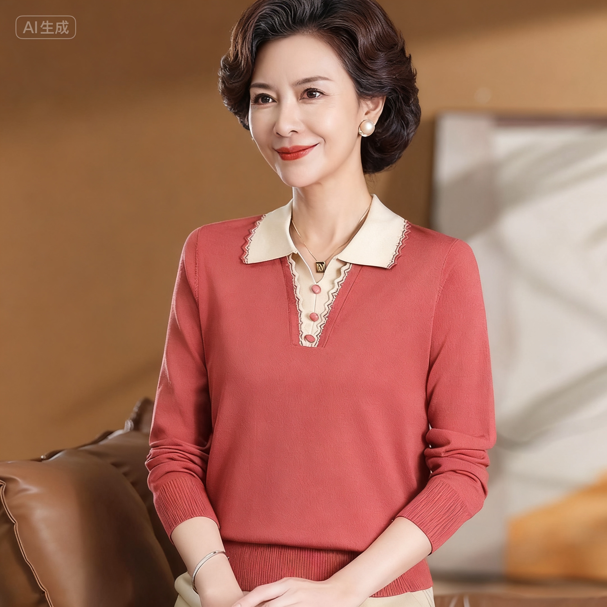 奶奶妈妈秋冬毛衣女一体春秋上衣保暖衣中老年人加绒加厚打底老人