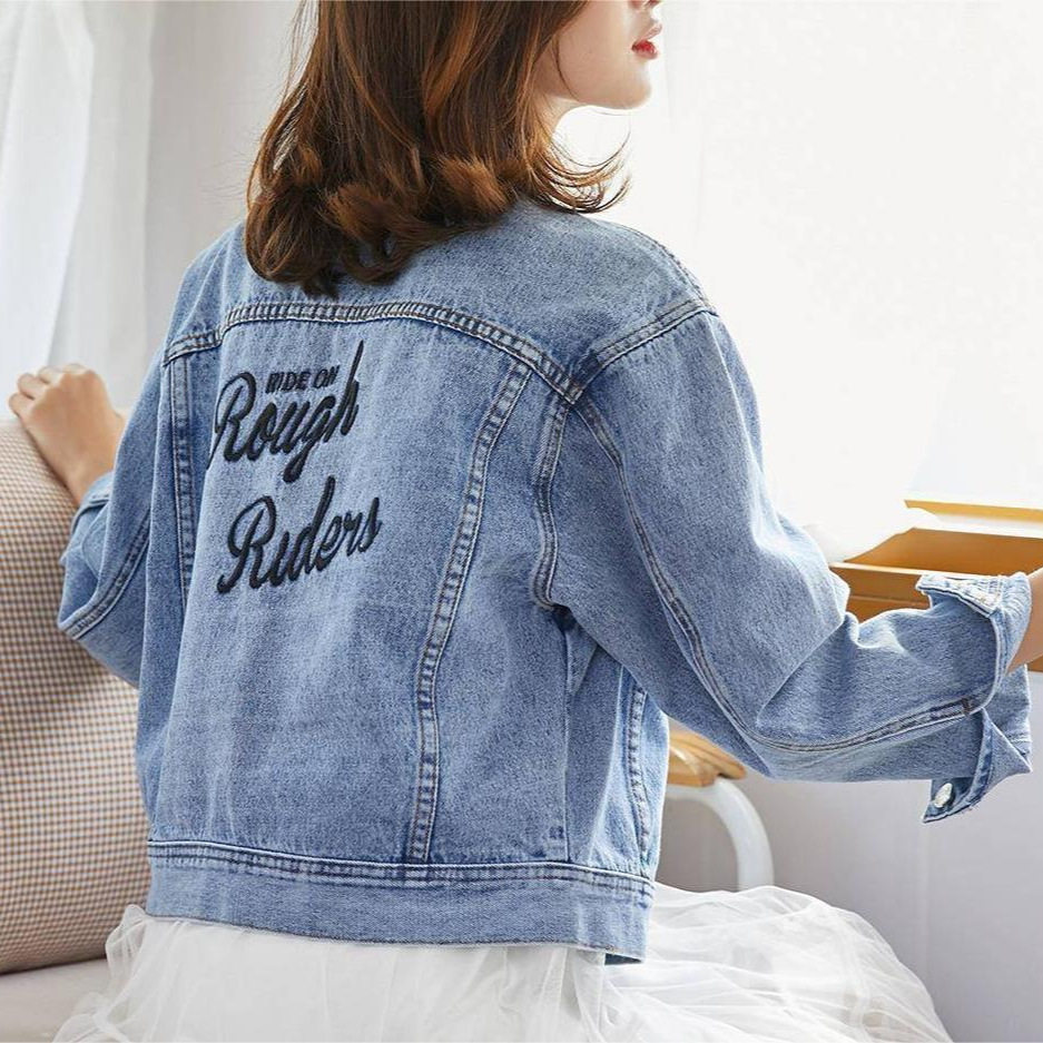 牛仔外套女学生韩版宽松2025秋装新款BF刺绣宽松港风牛仔上衣女潮