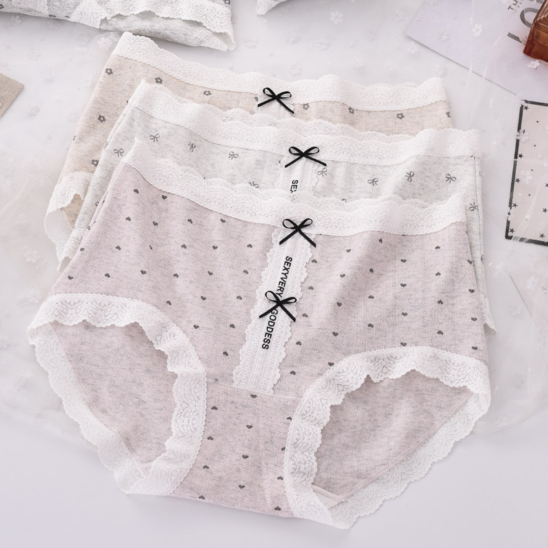 热卖日系女士内裤中腰纯棉质面料蕾丝夏季透气包臀性感舒适三角裤