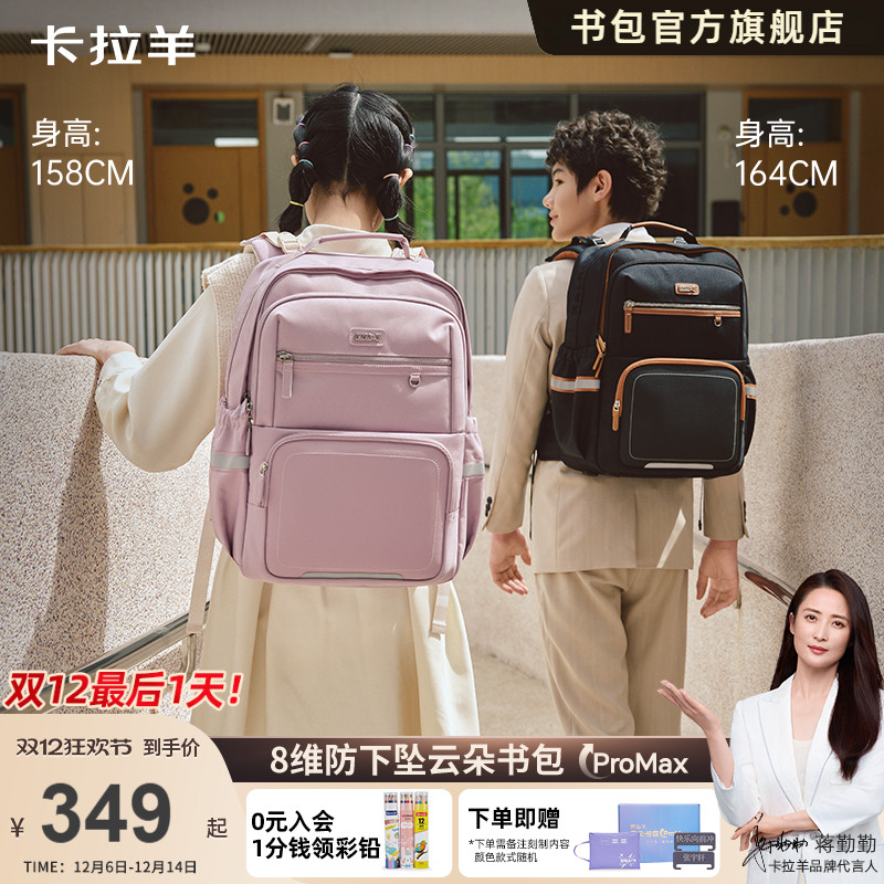 [蒋勤勤代言]卡拉羊书包初中男生8维减负云朵书包ProMax双肩包
