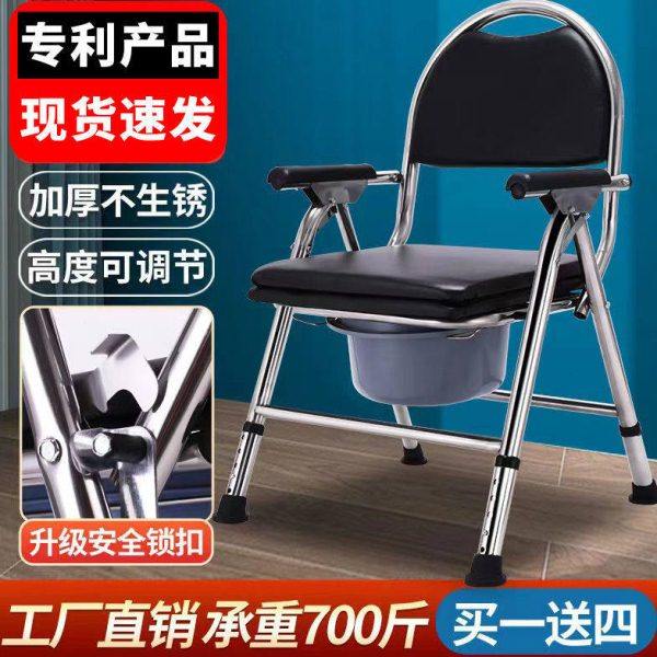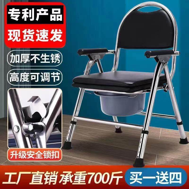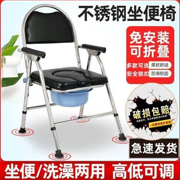 老人坐便椅残疾病人坐便器不锈钢加厚座便椅家用洗澡折叠移动马桶