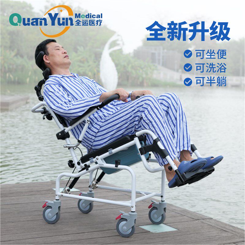 全运老人坐便椅带轮可洗澡家用残疾人瘫痪人病人坐便器可移动护理