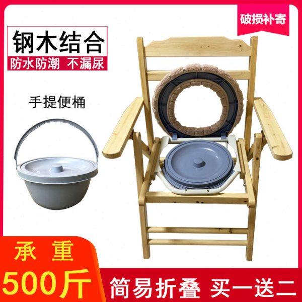 实木扶手坐便椅老人孕妇残疾病人坐便器木质坐便凳厕所折叠桶家用