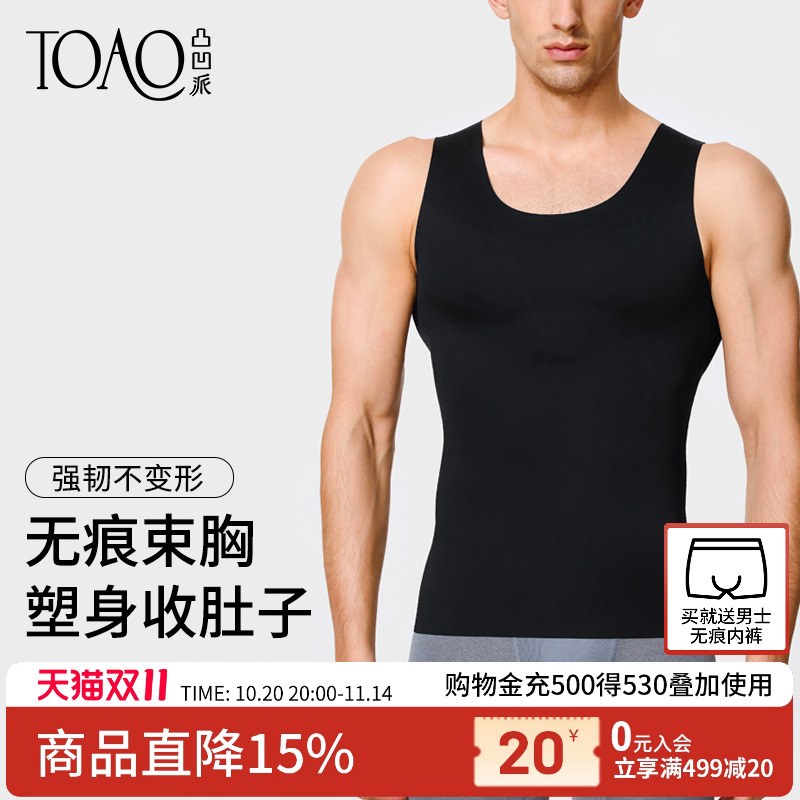 TOAO藏肉神器男塑身衣紧身束胸消除强力收腹束腰运动健身背心