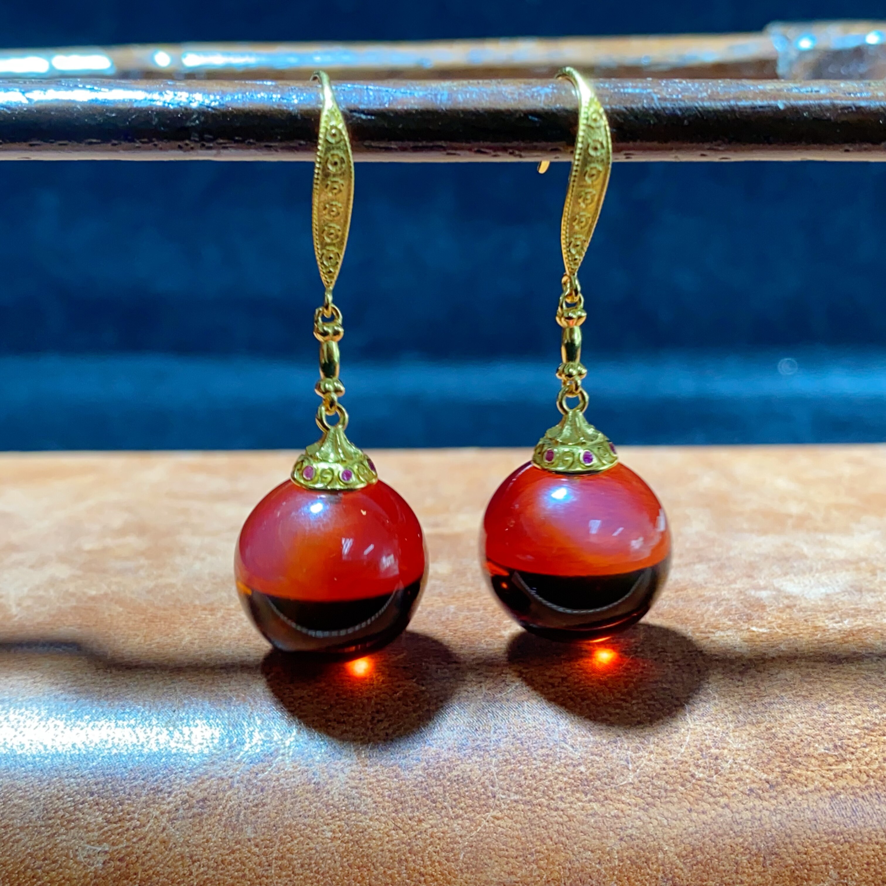 新品墨西哥红蓝珀大圆珠耳坠20mm净水豪华镶嵌琥珀血珀耳钩耳饰品