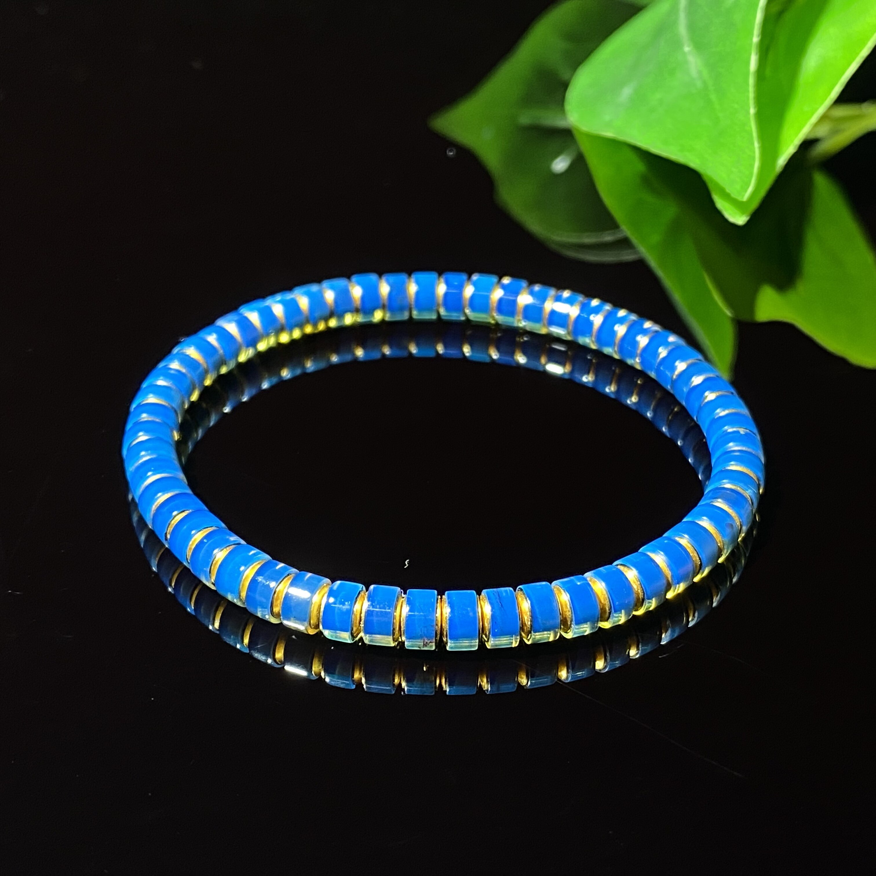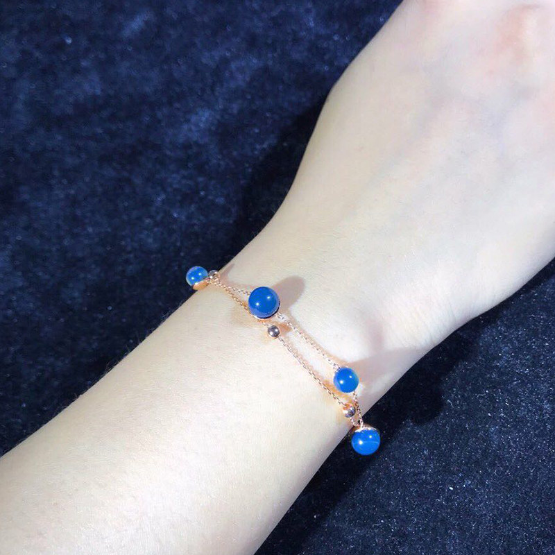 正品天然多米尼加蓝珀手链圆珠18K金天空蓝5A级别净水皇家蓝手环