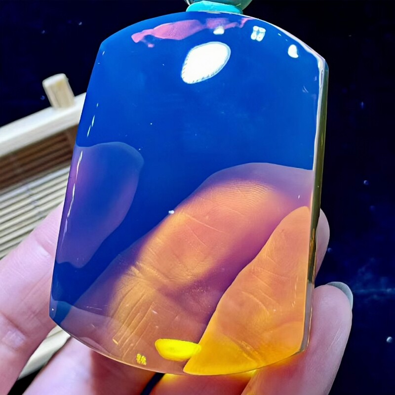 正品天然缅甸琥珀净水高蓝珀平安无事牌吊坠文玩百搭收藏珠宝饰品