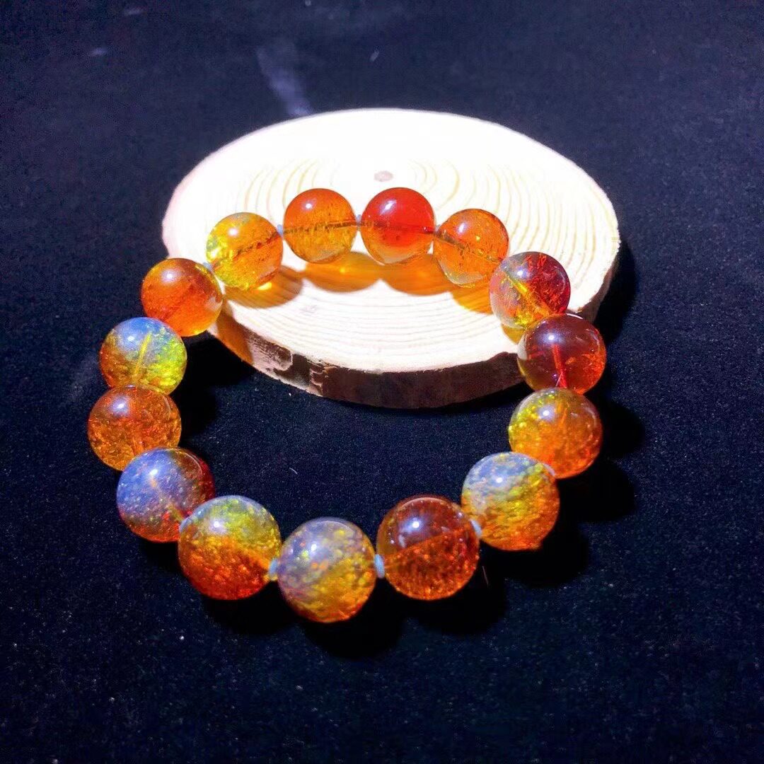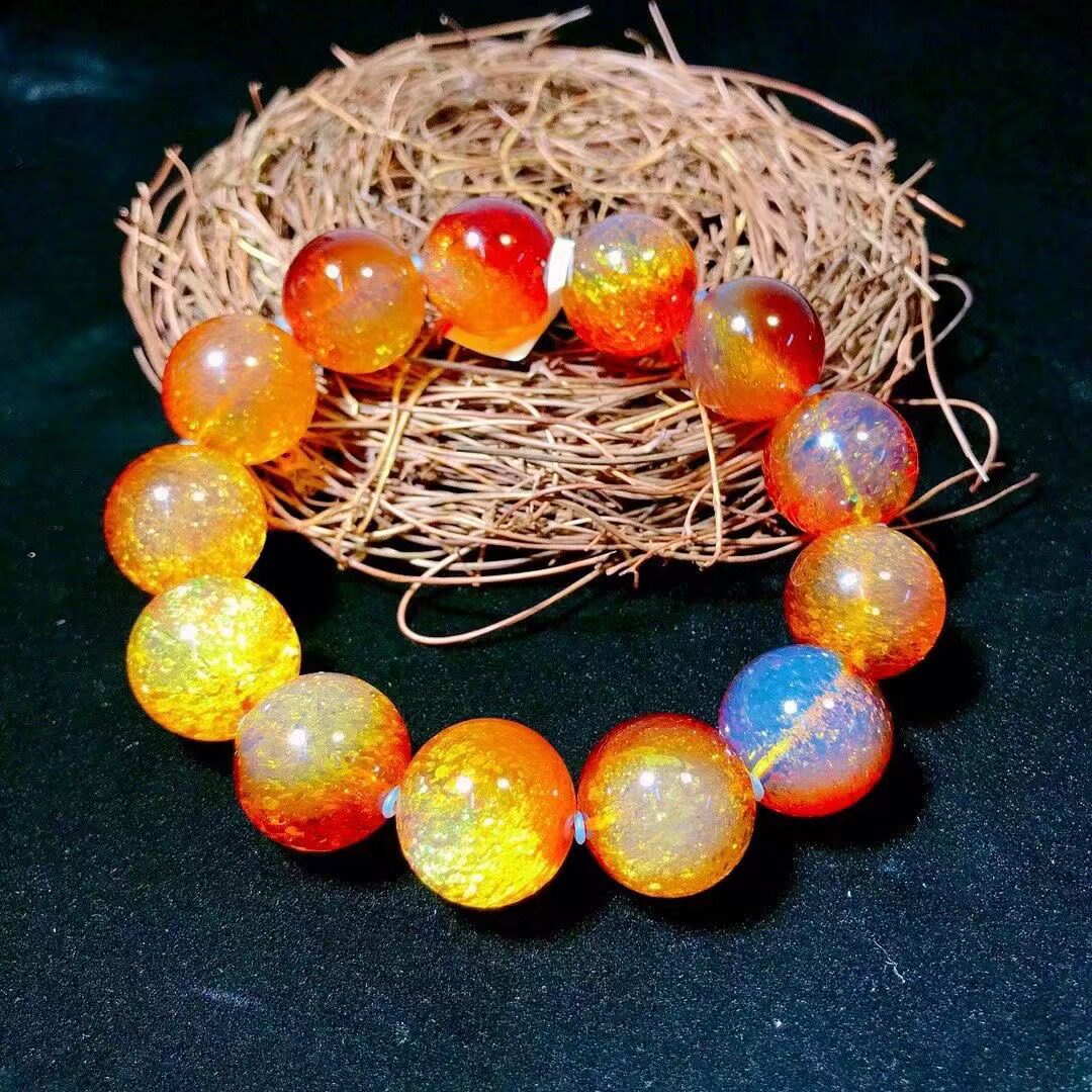 15mm墨西哥馆藏红蓝珀精品手串5A级无杂无裂火彩妖孽日常佩戴超赞