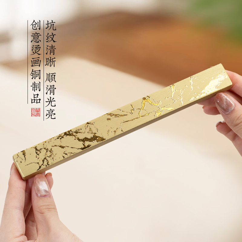 烫金泼墨黄铜镇尺实心笔搁书法镇尺毛笔压纸瘦金小楷学生初学者压书压宣纸毛边纸国画书法文房四宝书案小摆件