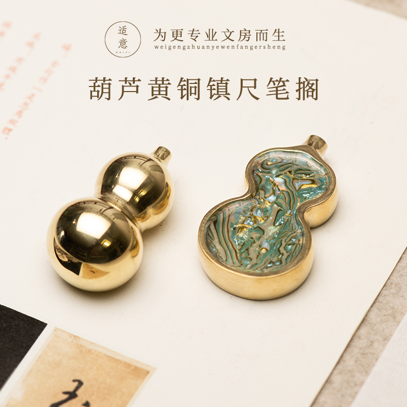 适意葫芦黄铜螺钿镇纸实心黄铜镇尺圆形镶嵌螺钿文艺高档文房雅器书法国画压纸笔搁书房摆件礼盒装送礼新中式