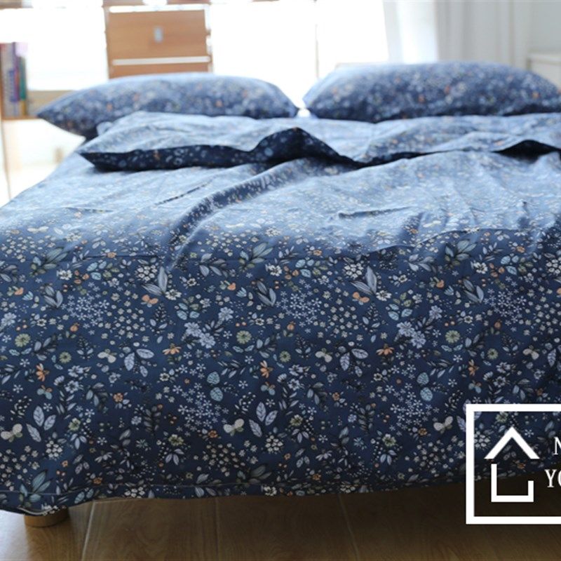 日式宿舍1.2m床三件套 全棉田园被套床单1.5m1.8米床上四件套