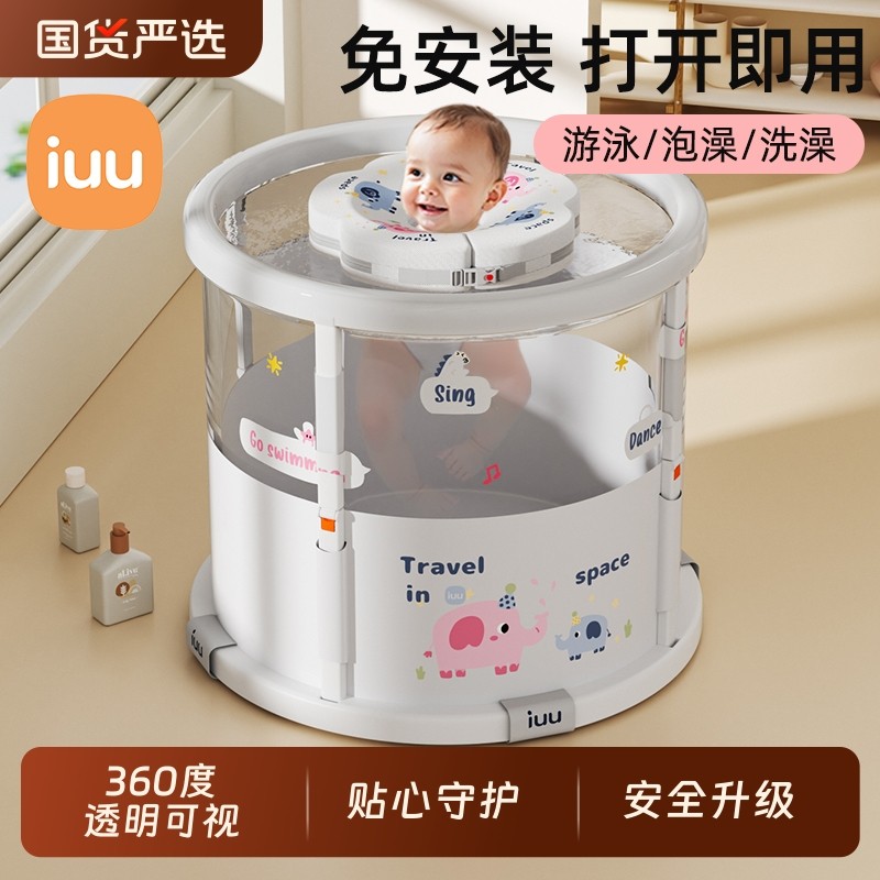 IUU婴儿游泳桶家用泡澡桶新生儿折叠坐浴桶宝宝洗澡桶大号游泳池