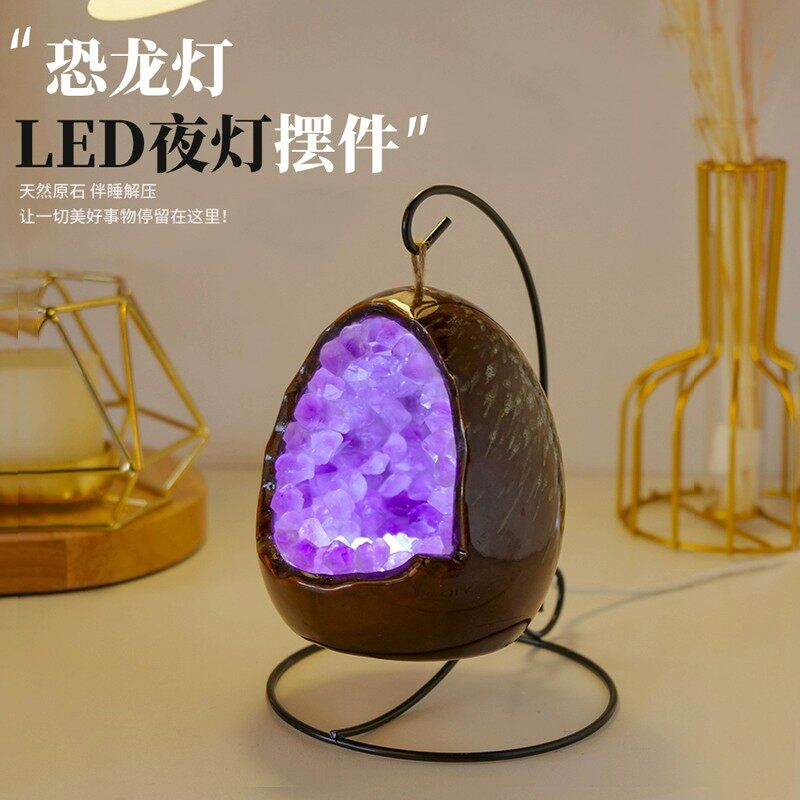 天然紫晶洞恐龙蛋创意led小夜灯摆件紫水晶原石灯紫晶牙婴儿喂奶