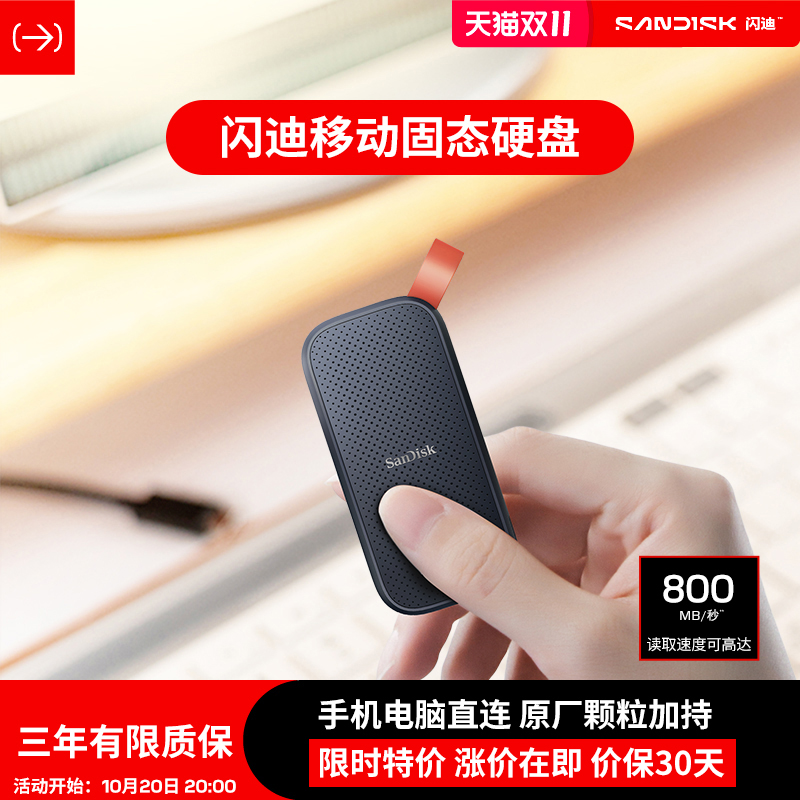闪迪e30移动固态硬盘1t笔记本手机2t外接PSSD便携式 DIY图片定制