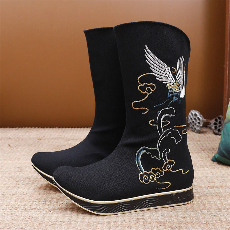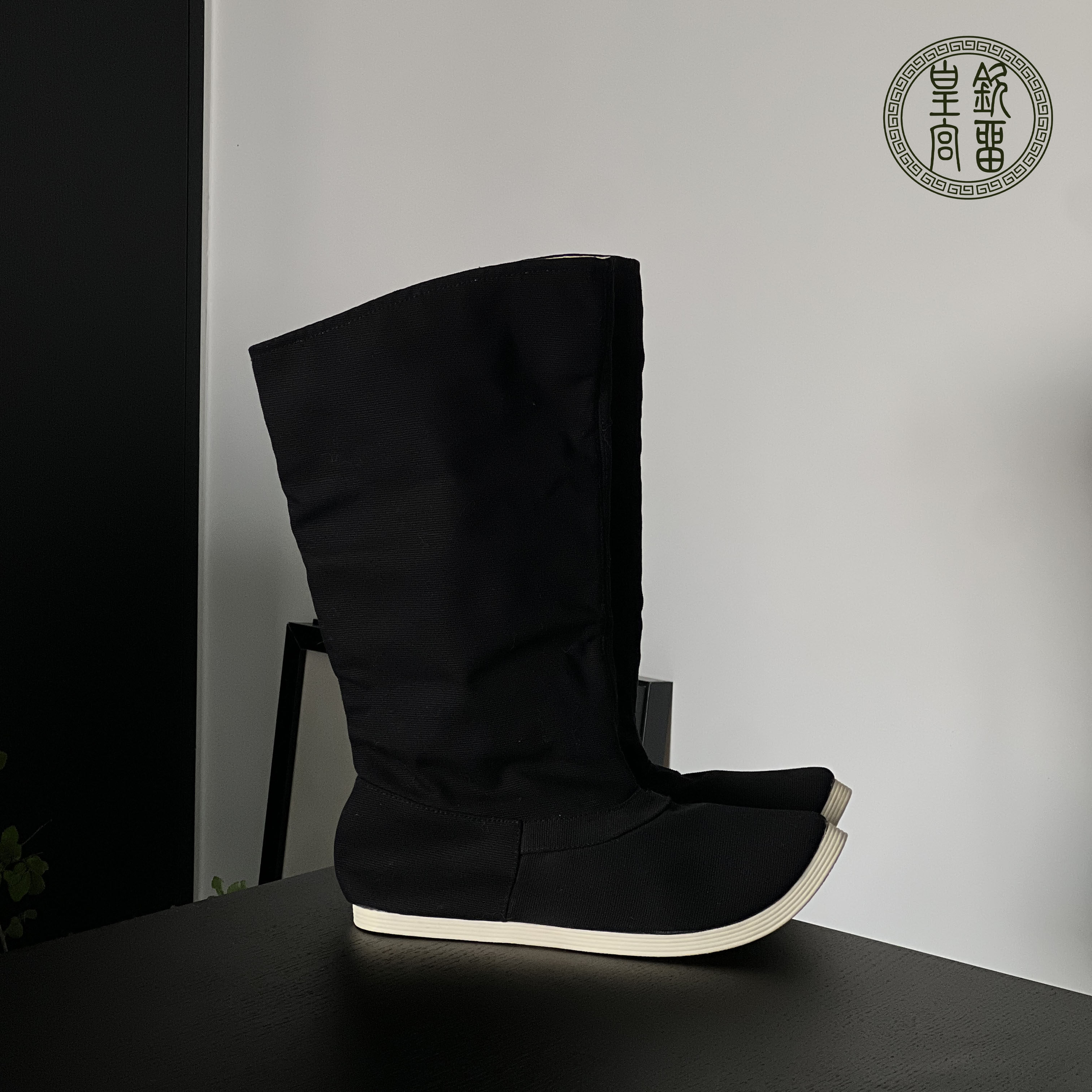 古风男汉服布靴子古装高筒靴厚底皂靴宋明制刺绣翘头婚鞋演出官靴
