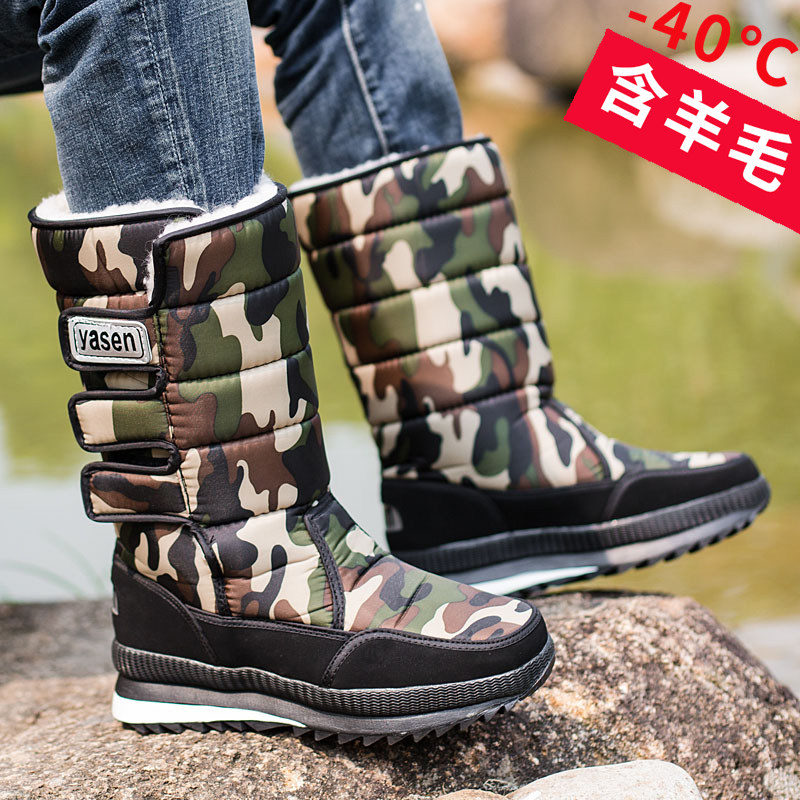 冬季户外男雪地靴防水防滑保暖高筒棉鞋加绒钓鱼靴加厚冰钓防水靴